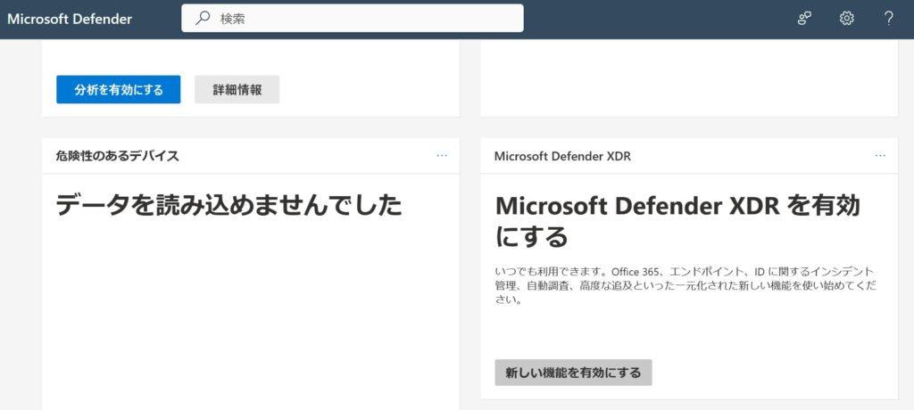 ④-1:Microsoft Defenderの管理ポータルから「ホーム」>「Microsoft Defender XDR」の「新しい機能を有効にする」をクリックする。